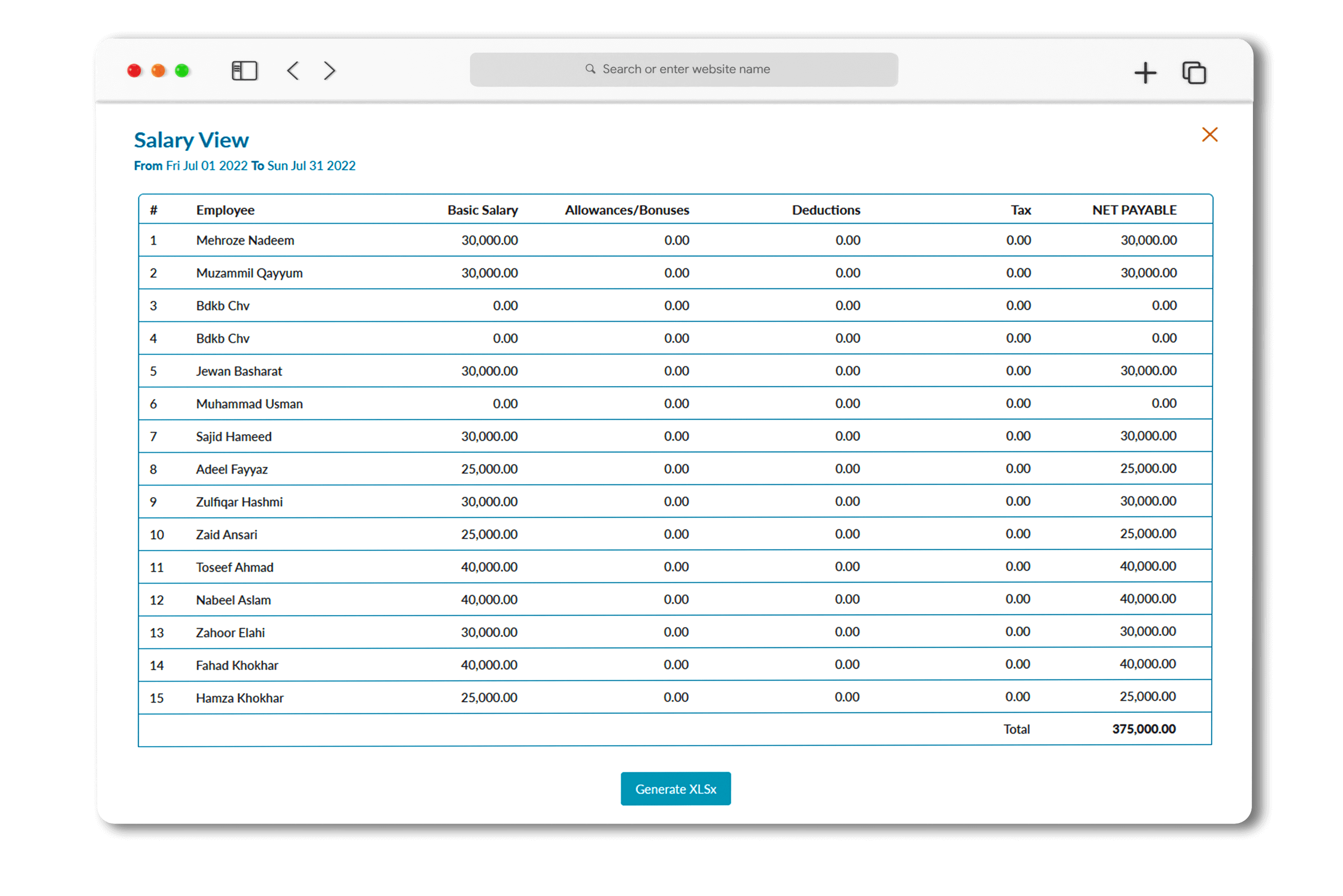 - Time IN, Time OUT and Time OUT to go out of premises.